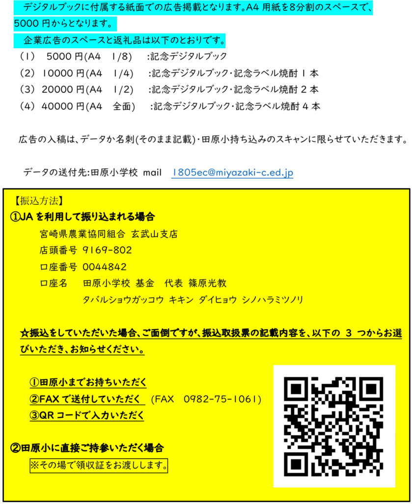 卒業生を含め地域や企業の皆様方か、ご支援を賜りますよう、重ねてお願い申し上げます。なお、寄付者のご芳名は、記念デジタルブックとともに、末永く保存させていただきます。